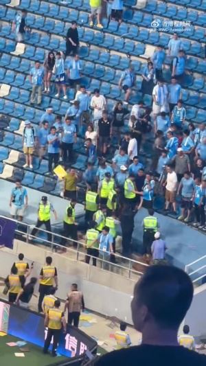 太危险了!一大连球迷赛后情绪激动欲冲场 从2米高的看台直接摔下